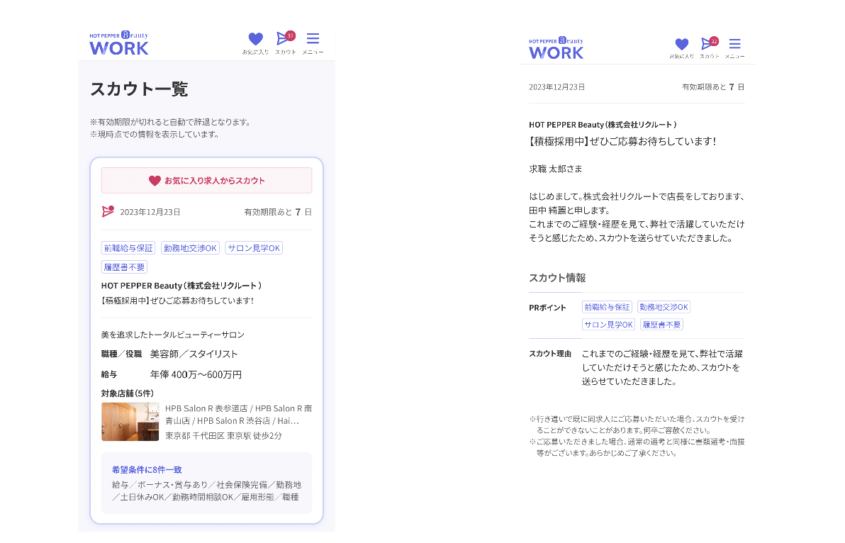 「スカウト機能」サービス詳細:https://work.beauty.hotpepper.jp/page/content/scout/