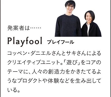 発案者は、遊び心あふれるプロダクトをデザインするクリエイティブユニット・Playfoolさん。彼らのプロトタイプをもとに、よりたくさんの方に手にとっていただけるよう、商品化に取り組みました。