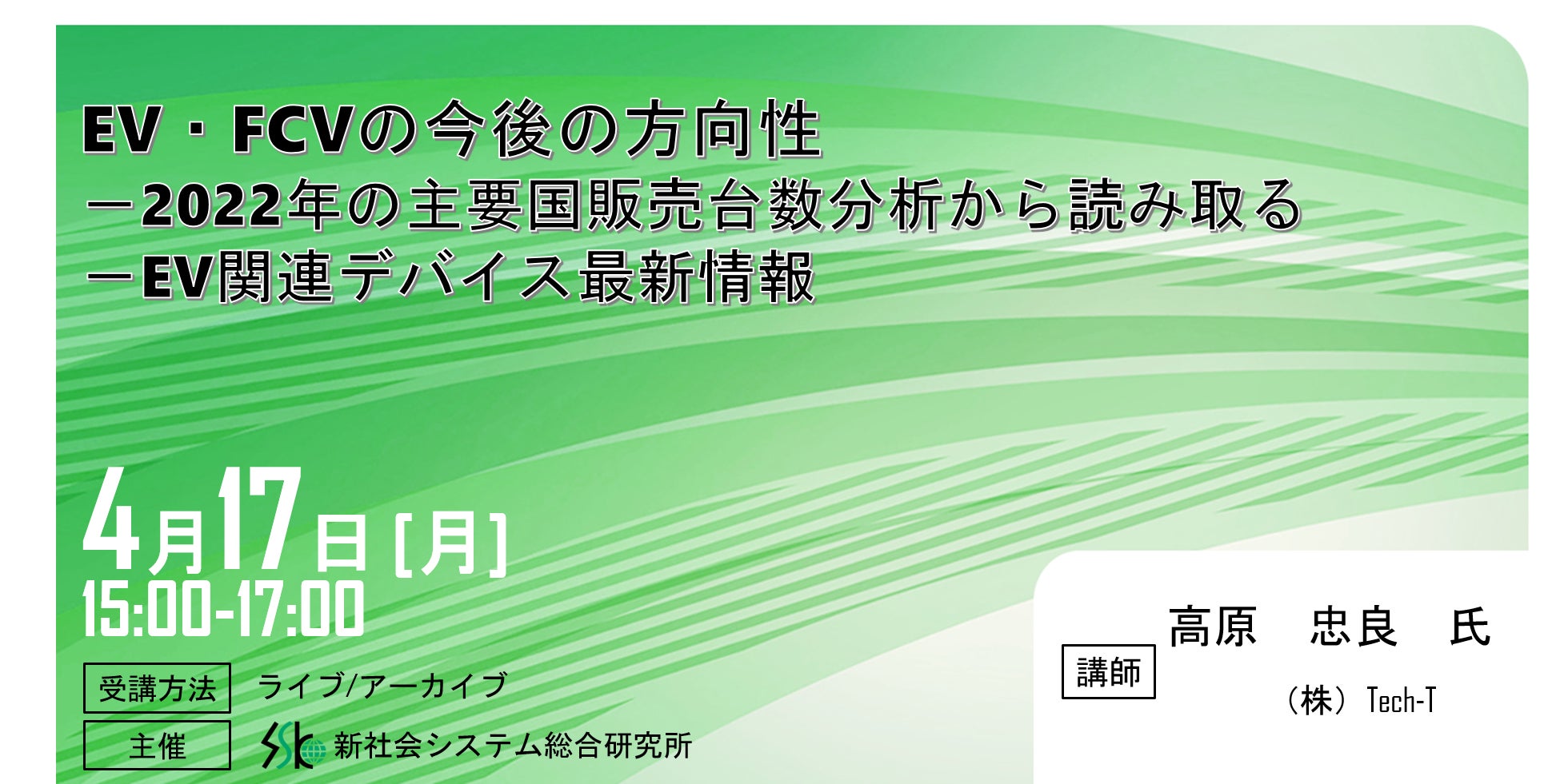 「EV・FCVの今後の方向性」と題して、株式会社Tech-T 代表取締役/埼玉工業大学 客員教授 高原 忠良氏によるセミナーを2023年4月17日(月)に開催!!