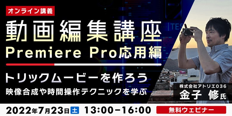 - オンライン講義! 動画編集講座 Premiere Pro応用編 トリックムービーを作ろう ~映像合成や時間操作テクニックを学ぶ~