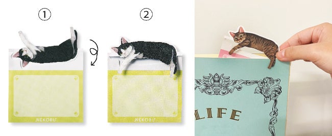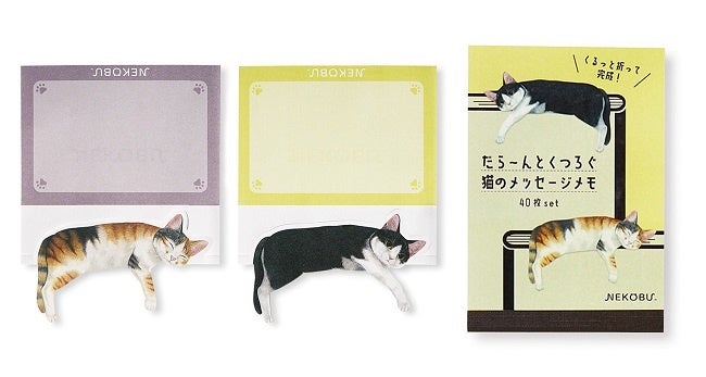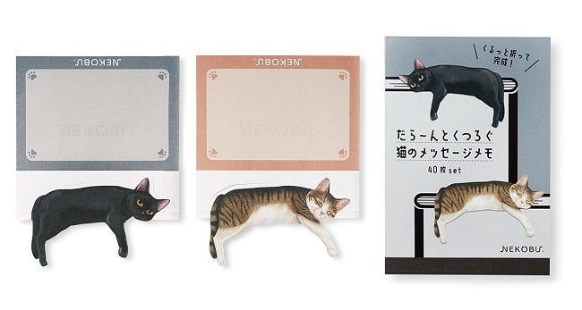 フェリシモが展開する「猫部™」は、「だら~んとくつろぐ猫のメッセージメモ」のウェブ販売を4月20日より開始しています。「そんなところで!?」と思わず2度見してしまうような場所で、猫がだら~んとくつろいでいるおなじみの姿が、ノートや本の上でも再現できるメモです。猫のイラストの部分をラインに沿って山折りして、乗せたいところに引っかければ完成です。メッセージを書けるスペースがあるので、伝言と一緒に癒やしのひと時も届けられます。デザインは〈茶白・キジトラ〉〈三毛トラ・ハチワレ〉〈サビ・茶トラ〉〈黒・キジ白〉の1冊に2柄がセットになった4種類で、起きている猫と寝ている猫の組み合わせになっているのもポイントです。1冊40枚なので、たっぷり使えて、職場や学校、ご自宅でも、ほっこり癒やしてくれる猫たちが、かわいくだら~んと大活躍します。販売価格の一部は飼い主のいない動物の保護と里親探し活動、野良猫の過剰繁殖防止活動、災害時の動物保護活動などに活用されます。