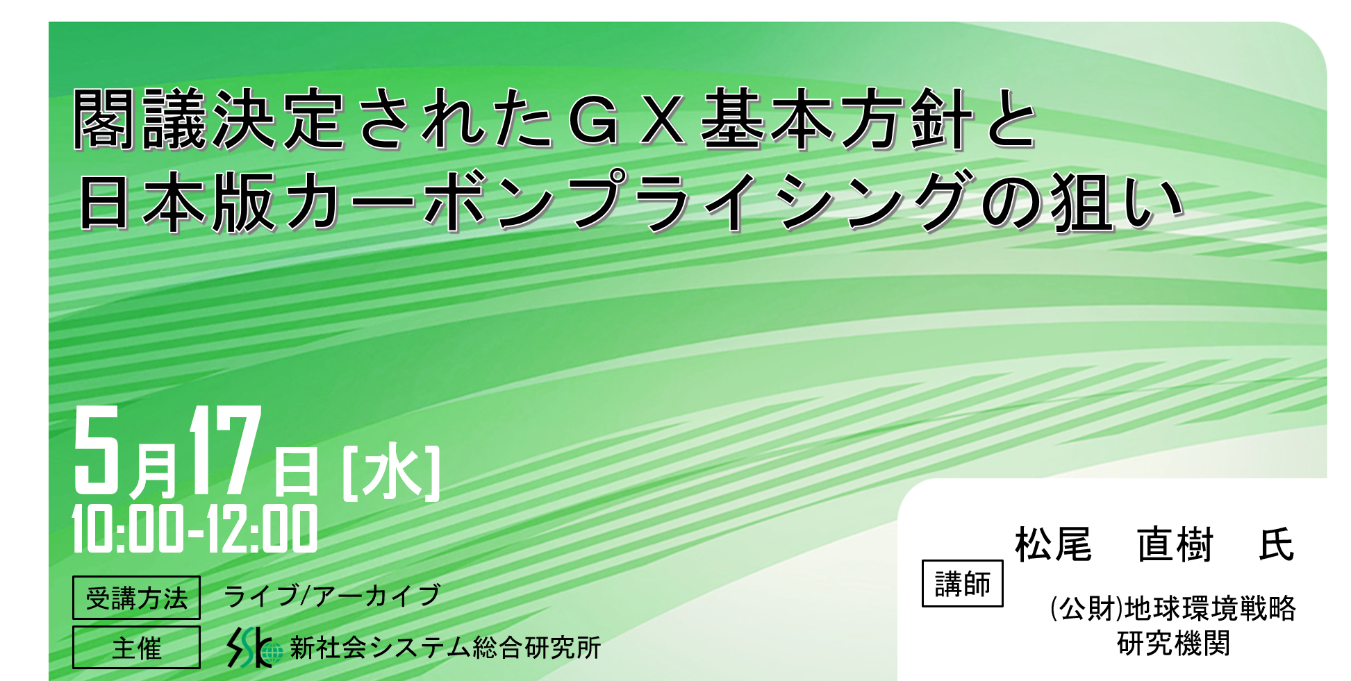 「日本版カーボンプライシングの狙い」と題して、(公財)地球環境戦略研究機関 松尾 直樹氏によるセミナーを2023年5月17日(水)に開催!!