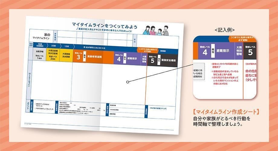 災害の際に自分や家族がとるべき行動を時間軸で整理できるシートです。