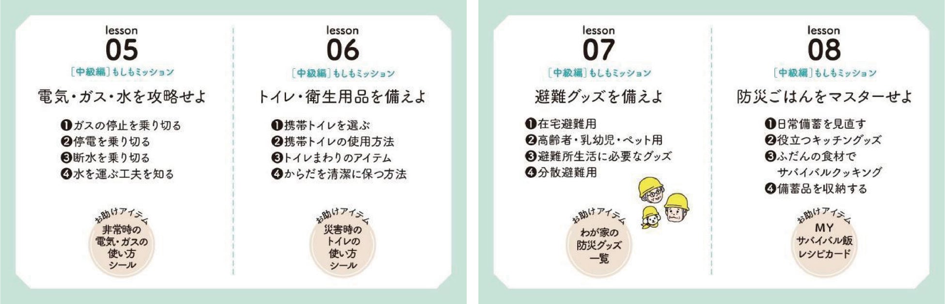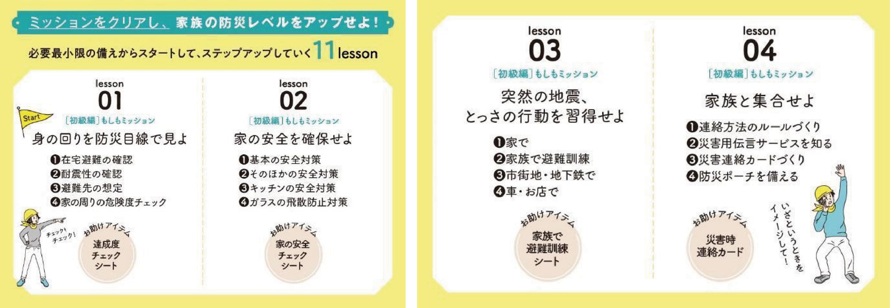 毎月、ひとつのミッションにつき、4つの任務が用意されており、クリアしていきます。ミッションを通して、自分の暮らしに合った備えや、家族でやってほしい任務などを学ぶことができます。