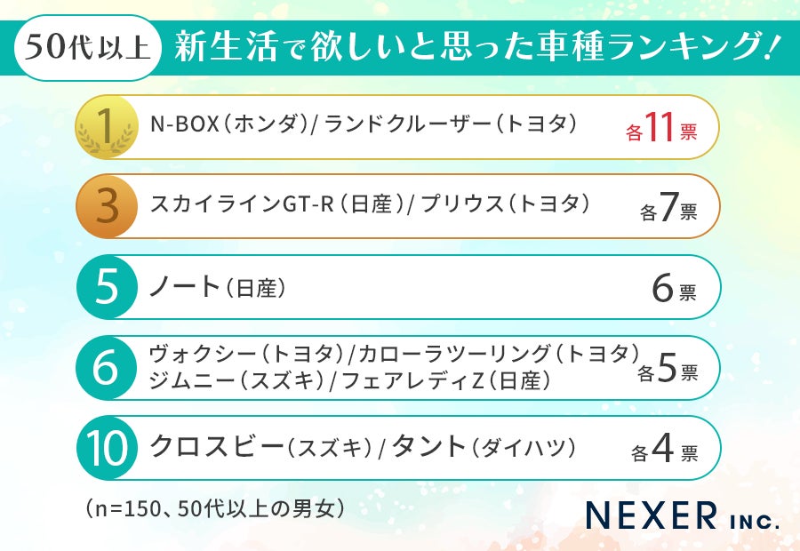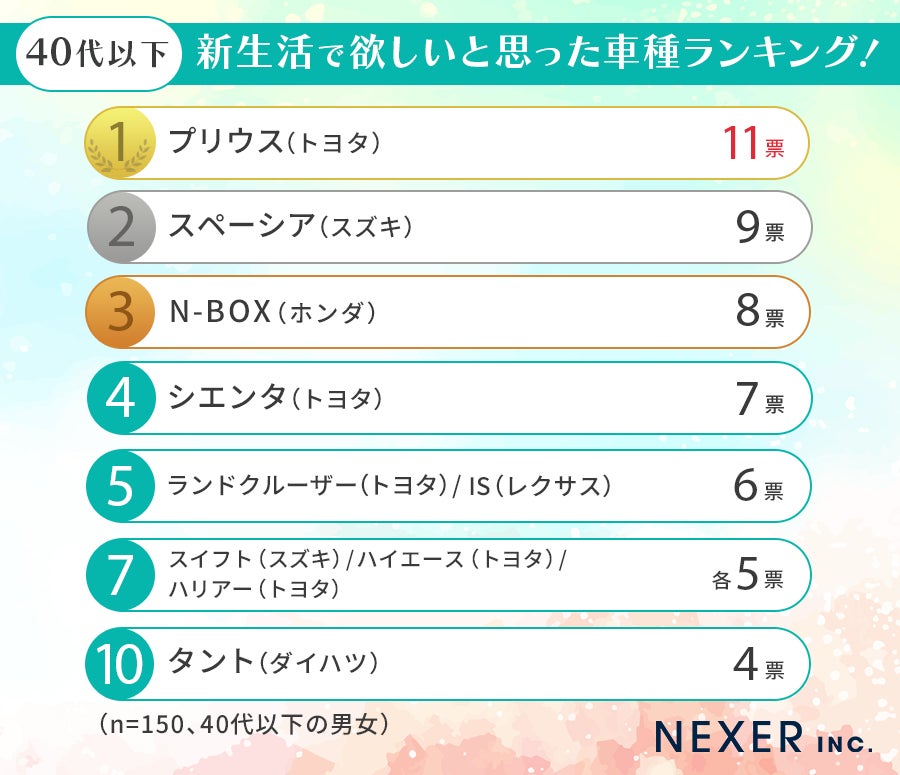 株式会社NEXER・新生活で欲しいと思った車種に関する調査