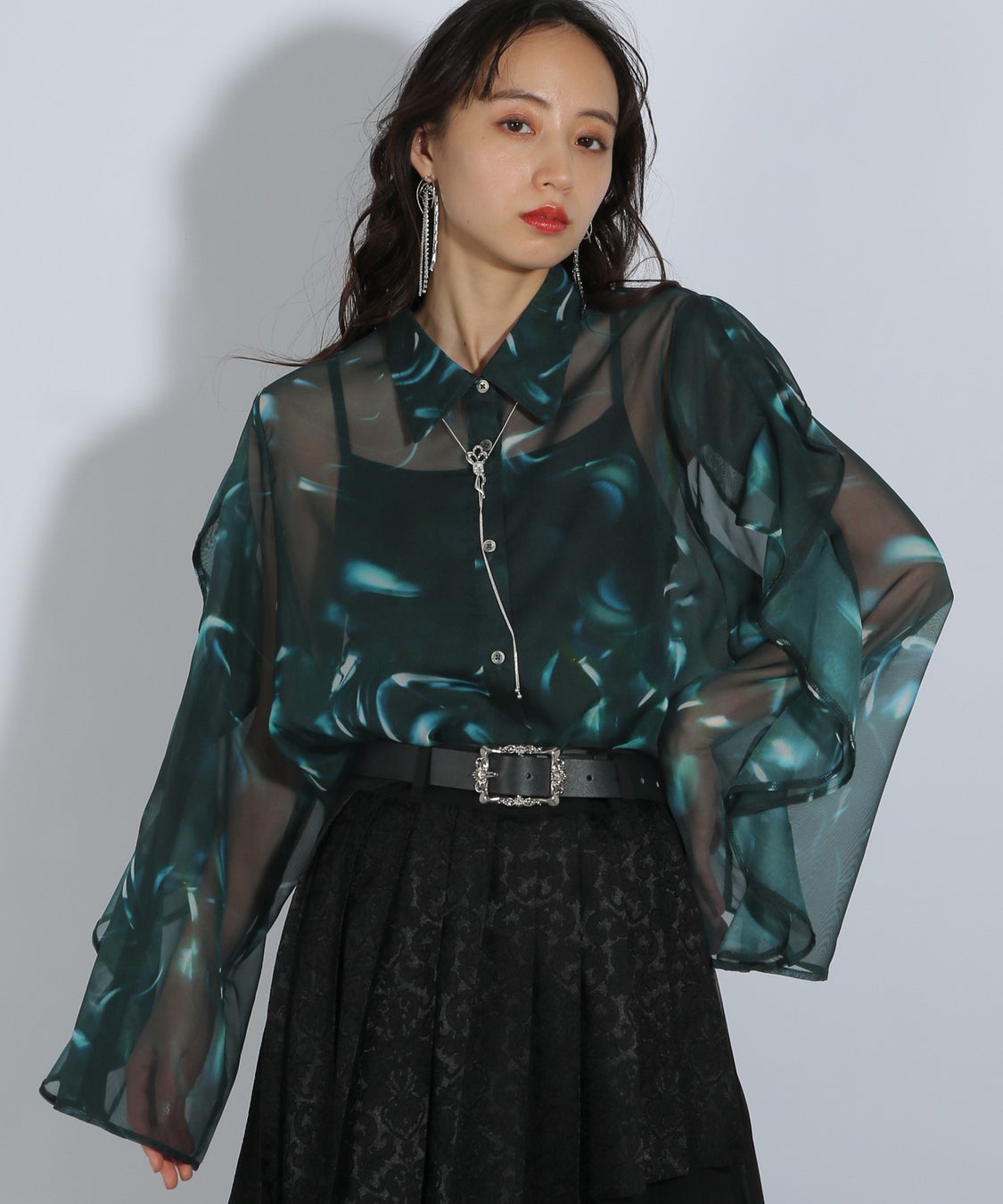 商品名:ソデフリルシアーシャツ