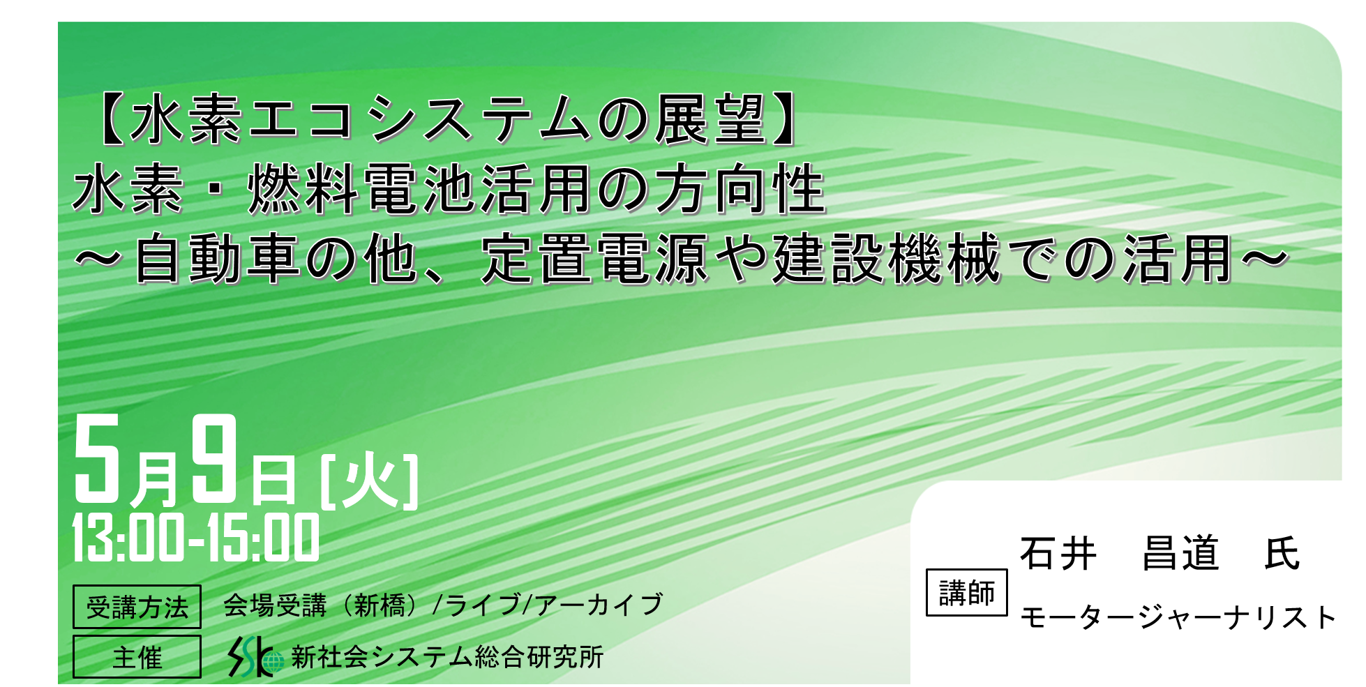 「水素・燃料電池活用の方向性」と題して、モータージャーナリスト 石井 昌道氏によるセミナーを2023年5月9日(火)に開催!!