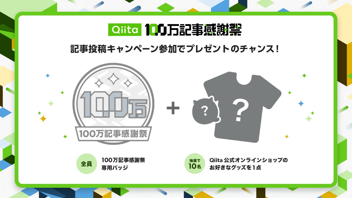 今回、Qiita100万記事突破を記念して、以下2つのキャンペーンを実施します。