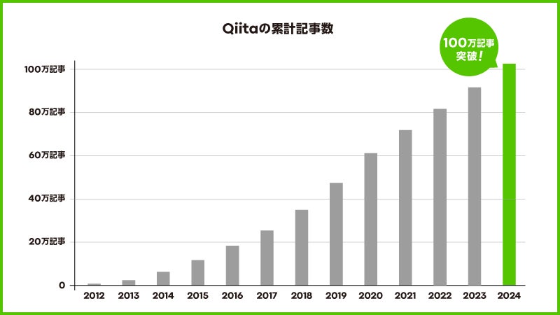 「Qiita」は2011年9月にサービスを開始して以来、エンジニアに関する知識を記録・共有するためのサービスとして、Qiitaユーザーによる記事が投稿され、2024年11月には累計100万記事を突破しました。