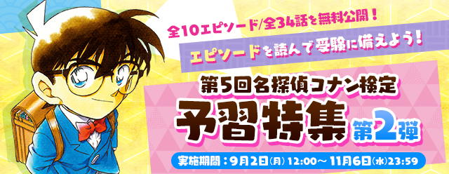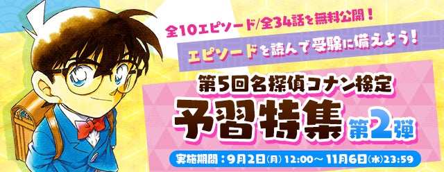 漫画やスタンプ、アニメなど、『名探偵コナン』の全ての情報が詰まった「名探偵コナン公式アプリ」にて、名探偵コナン検定の受験勉強に活用できる「予習特集」を、2024年7月16日(火)~11月6日(水)までの期間限定で実施します。