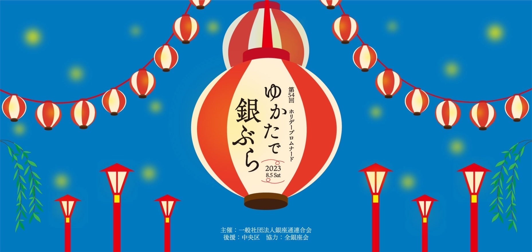 東京都での歩行者天国は、1970年8月に銀座、新宿、池袋、浅草で初めて実施され、銀座では中央通りの銀座一丁目 銀座通り口交差点から銀座八丁目交差点の間で土曜・日曜・祝日に開催されてきました。この歩行者天国開催の記念と、銀座を来訪された方々に楽しく夏の一日を過ごしていただこうという趣旨により、毎年歩行者天国となった中央通りを会場に「ホリデープロムナード」という名を冠したイベントを開催しています。「ゆかたで銀ぶら」は、このホリデープロムナードの一環として、夏の風物詩でもあるゆかたを着て銀座にお越しいただき、いっときの涼をお楽しみいただくという趣向で2007年から始まり、今回で17回目を迎えます。今年は4年ぶりに従来規模での開催が実現。『盆踊り』や大人気企画『銀座涼風計画・打ち水』も規模を拡大して開催します。他にも恒例となったイベントに加え新企画や、ゆかたでお得な企画など盛り沢山のイベントです。