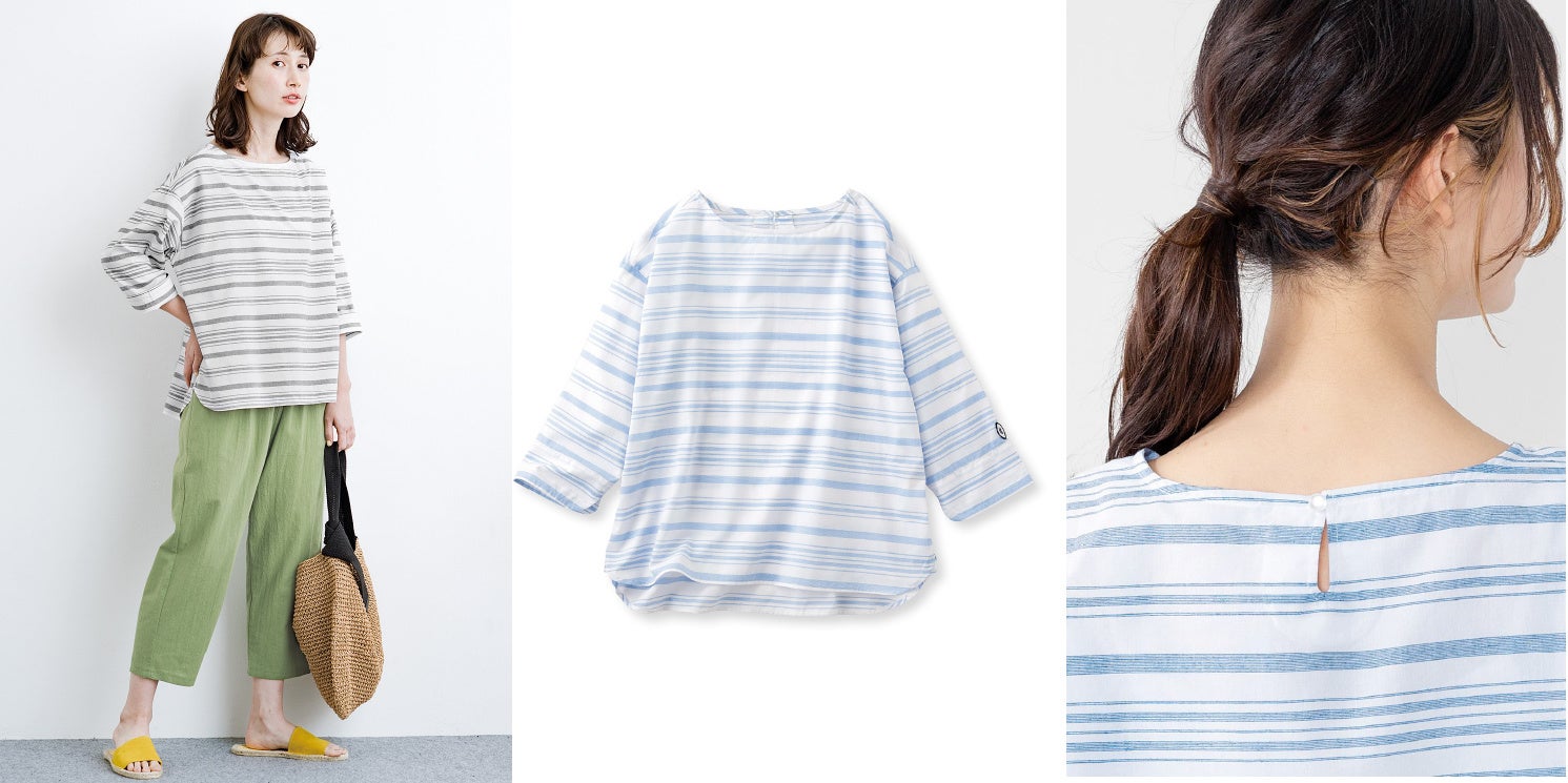 フェリシモ「frauglatt[フラウグラット]」から「ブラウス仕立てのボーダートップス」や吸水速乾生地やUV対策が特徴の「ペールトーンパンツ」など2022年春夏の新作アイテムが登場