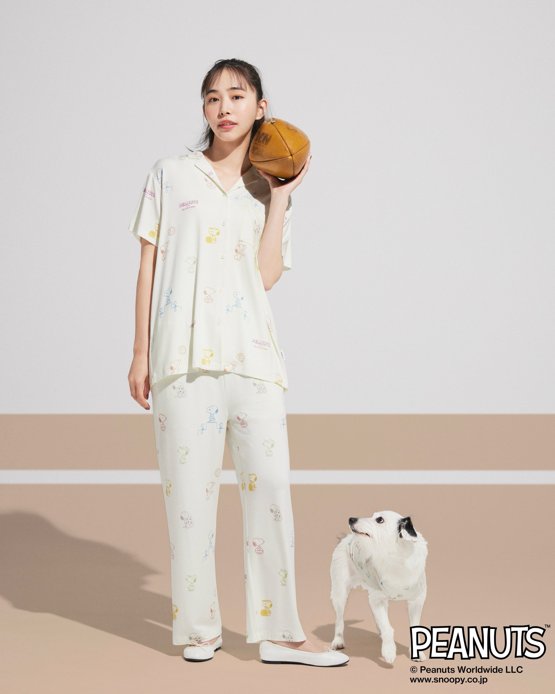 ベースボールや、サッカーそしてトロフィーなど、スポーツをモチーフとしたPEANUTSのアートを使用したルームウェア!お家で楽しくパリオリンピック・パラリンピックの応援も。