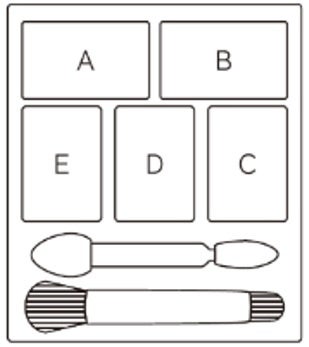 ⑤ Eのカラーを上まぶたの中央あたり(黒目の上の立体)に輝きをのせるようになじませ、立体感を高めます。