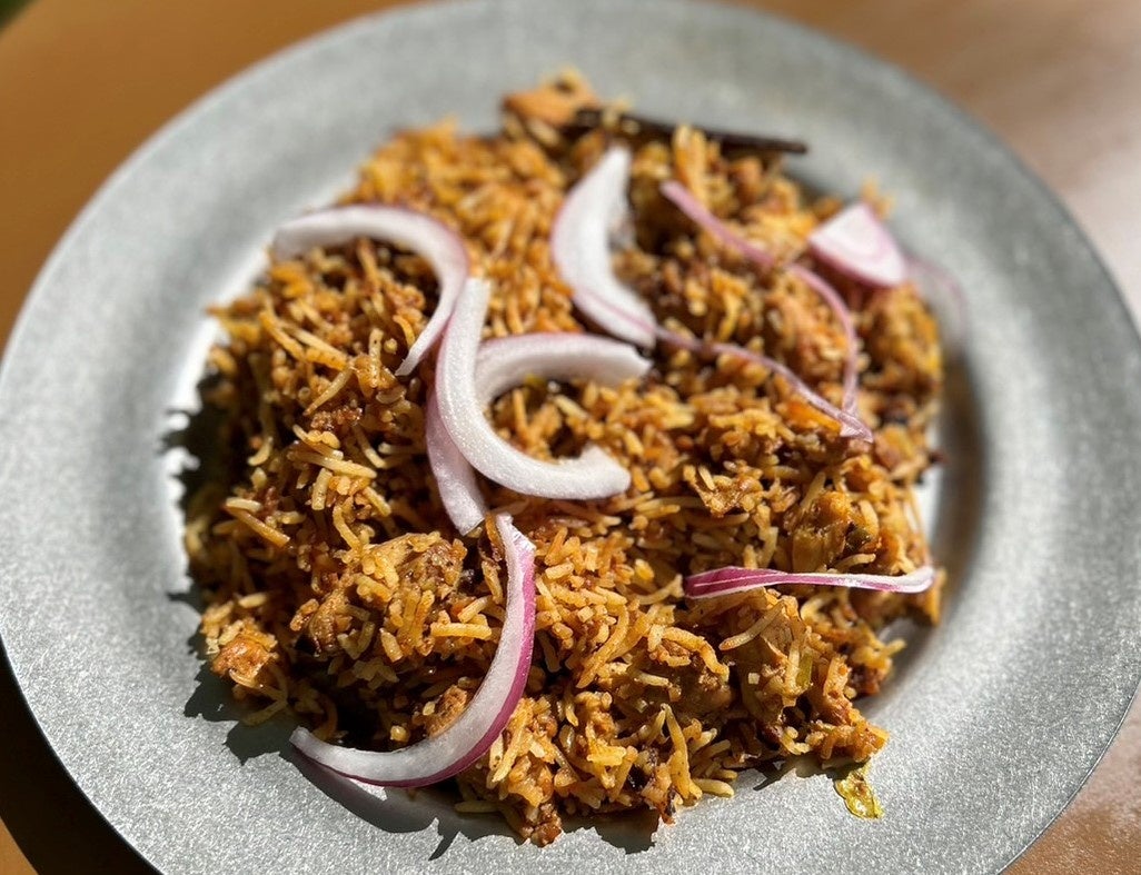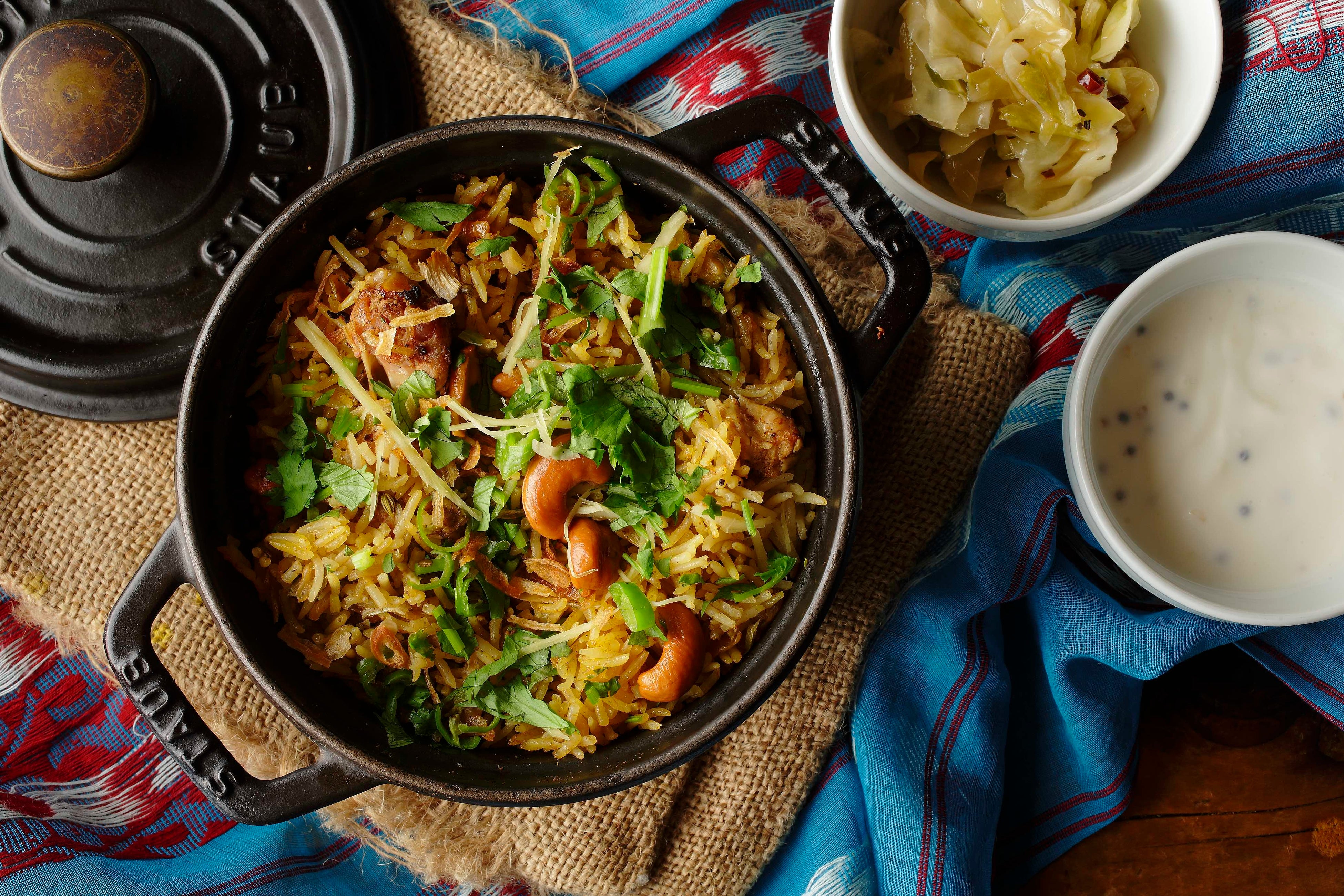 たっぷりのスパイスで作ったマサラとパラパラのバスマティ米を重ね合わせ、じっくりと炊き上げた風味豊かなチキンビリヤニです。