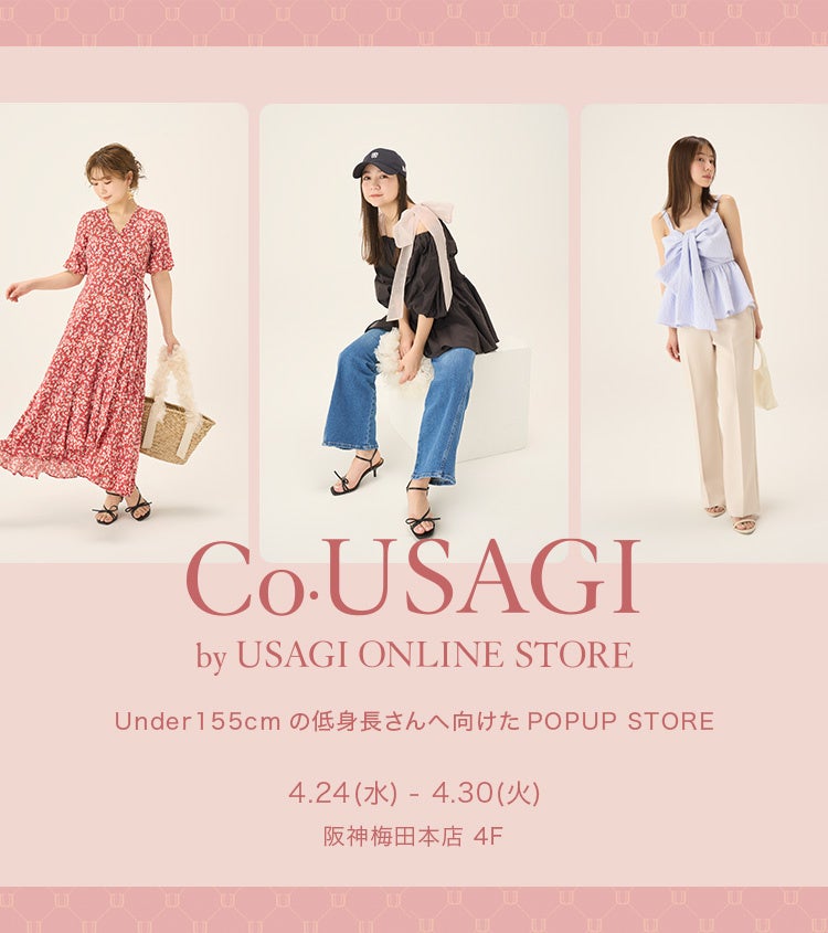 SNIDELなど8ブランドの低⾝⻑向けサイズアイテムを集約した『Co.USAGI by USAGI ONLINE STORE』が阪神梅田本店に4⽉24⽇(⽔)より期間限定オープン!