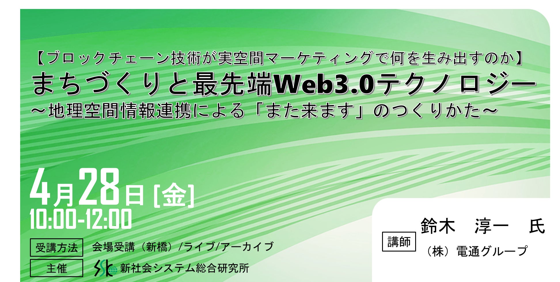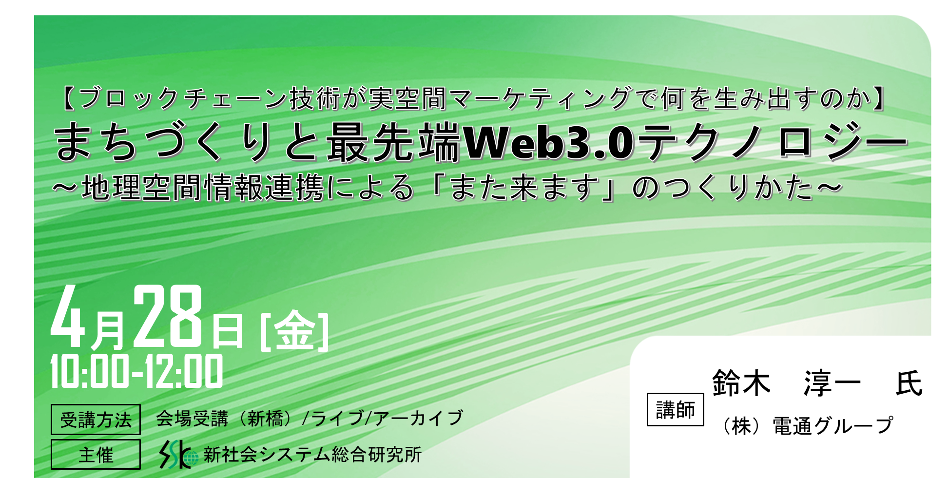 「まちづくりと最先端Web3.0テクノロジー」と題して、(株)電通グループ 電通イノベーションイニシアティブ プロデューサー 鈴木 淳一氏によるセミナーを2023年4月28日(金)に開催!!