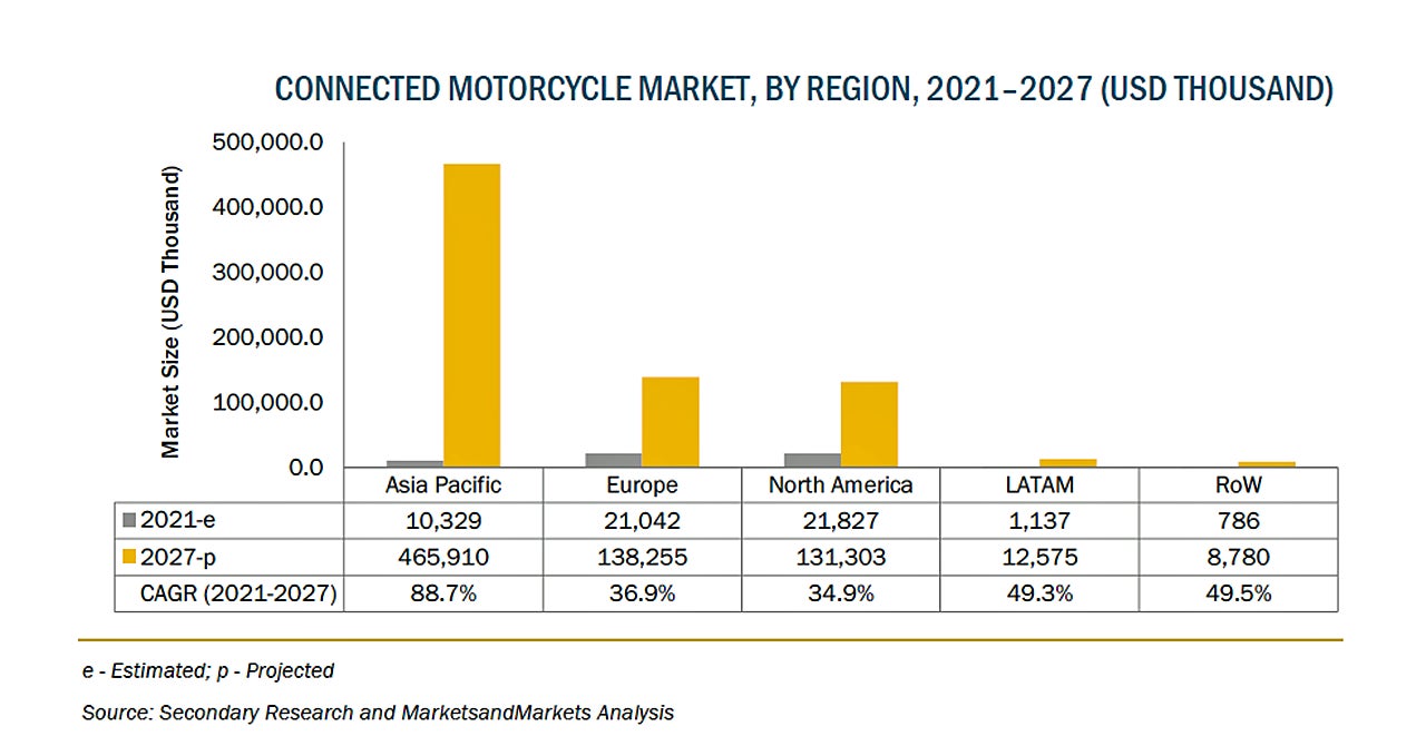 コネクテッドモーターサイクルの市場規模、2027年に7億5,700万米ドル到達予測