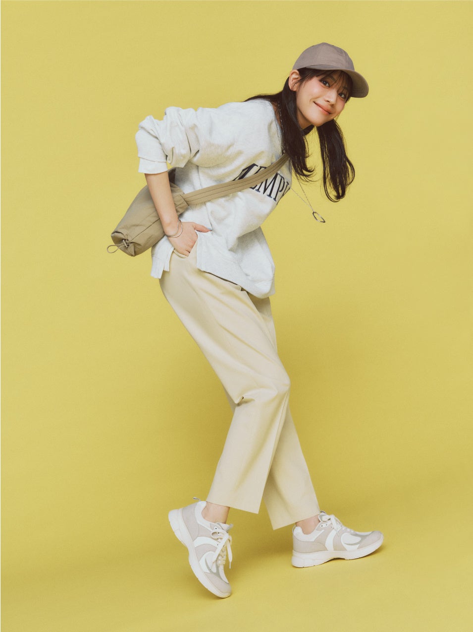 パンツ:ウツクシルエットテーパードパンツ/4,990円(税込)