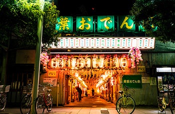 戦後の焼け野原にできた露天商のマーケットをルーツとする、ノスタルジックな光景も魅力の飲食街です。約630坪の敷地にチケットショップを含めた80店舗が集まり、狭い路地にはカウンターがメインの小さな飲食店が並んで、香ばしい匂いが漂います。古きよき昭和の雰囲気を味わいながら、はしご酒を楽しむことができます。