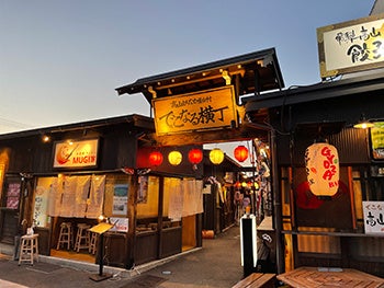 地元グルメをお値打ち価格で楽しめ、射的場なども揃う高山の夜の名所です。「でこなる」とは高山の方言で「大きくなる」という意味。訪れる人たちの夢が大きく叶うことを願って名付けられたそう。岐阜県のブランド牛・飛騨牛の焼肉店、高山ラーメンの店のほか、本格的なイタリアンから寿司・中華まで和洋様々な19店舗が集まっています。