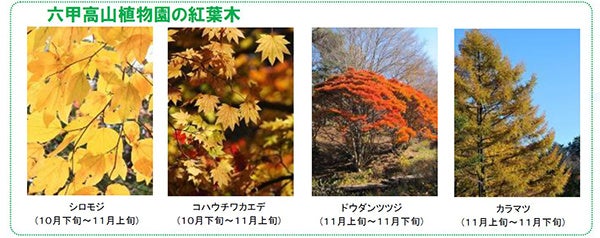 ※当園の紅葉は、シラキから始まり、ブナ、カエデ類、ツツジ類、カラマツ、高山植物と移り変わります。