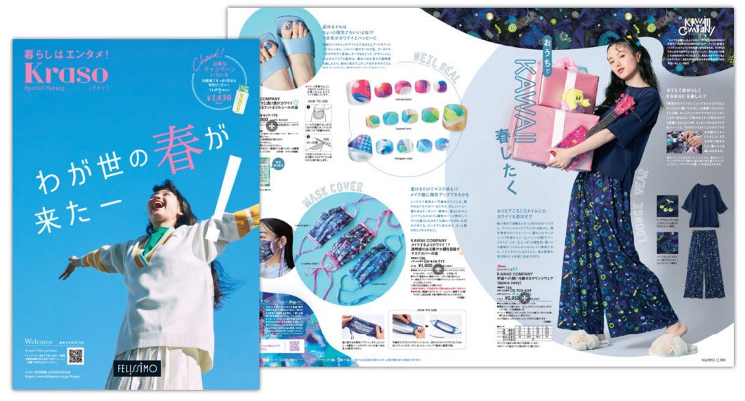 フェリシモが展開するアーティスト・増田セバスチャンとのコラボレーション、KAWAIIでみんなをHAPPYにするプロジェクト「KAWAII COMPANY[カワイイカンパニー]」が春夏の新作を発表、4月7日よりウェブ販売を行っています。ラウンジウェアは、カワイくないことをカワイくする企画で「ルームウェアがいまいちだとすぐに玄関先やベランダに出れない」というKAWAII COMPANYスタッフの声から生まれたアイテムです。お家の中でも自分らしくいられるラウンジウェアと一緒に楽しめる「フットネイルシール」も登場しています。新作は、公式サイトのほか、デジタルカタログでもチェックできます。
