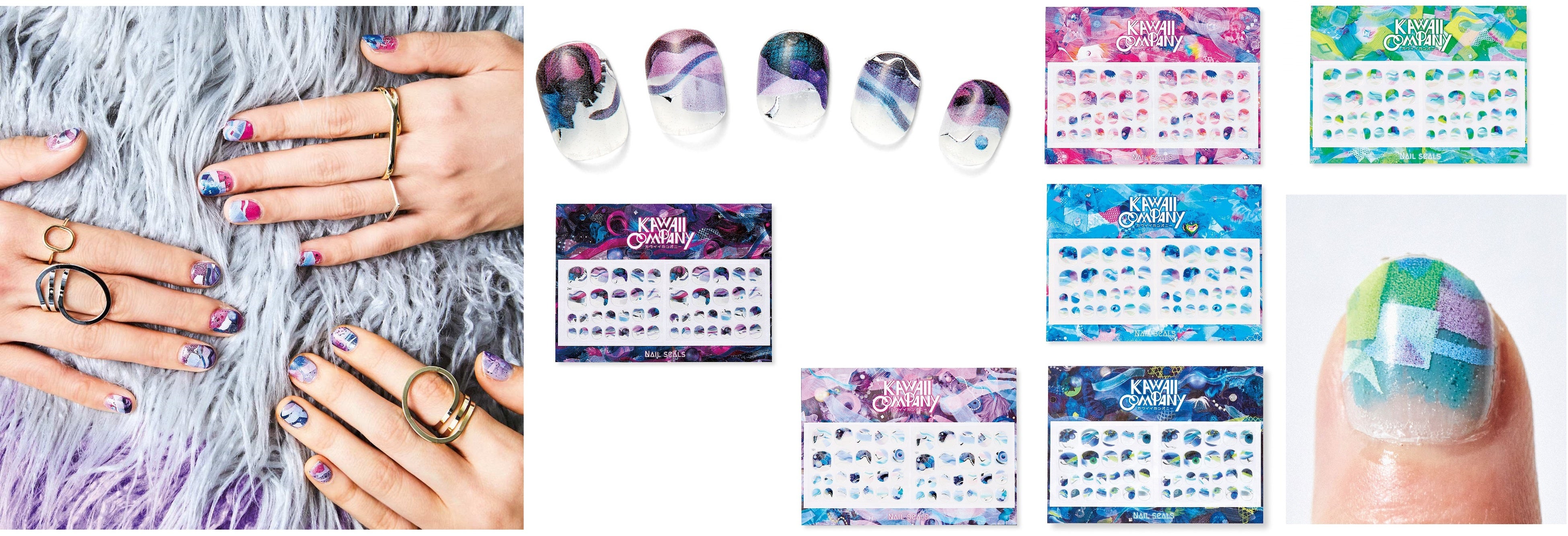 増田セバスチャンのアトリエで生まれたアートのフットネイルシールです。デザインには、シルバー箔やオーロラ箔、ゴールドラメのギラギラ部分と、クリアな部分があります。素のつめを見せて透明感を楽しんだり、好きな色のネイルポリッシュの上から貼って、KAWAIIネイルファッションが気軽に楽しめます。