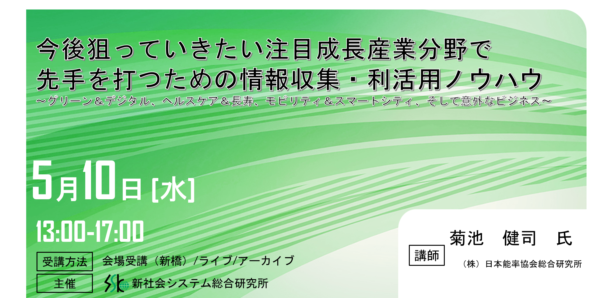 ビジネスセミナーを企画開催する新社会システム総合研究所(SSK)は、下記セミナーを開催します。
