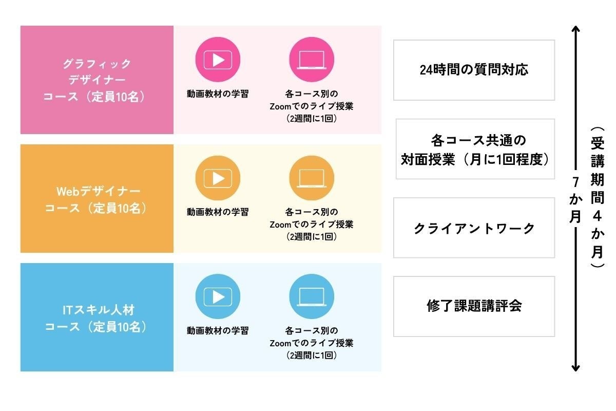 ※Adobe Creative Cloud, Figma, Office365, WordPressレンタルサーバー等、受講に必要なソフトライセンス費用含む