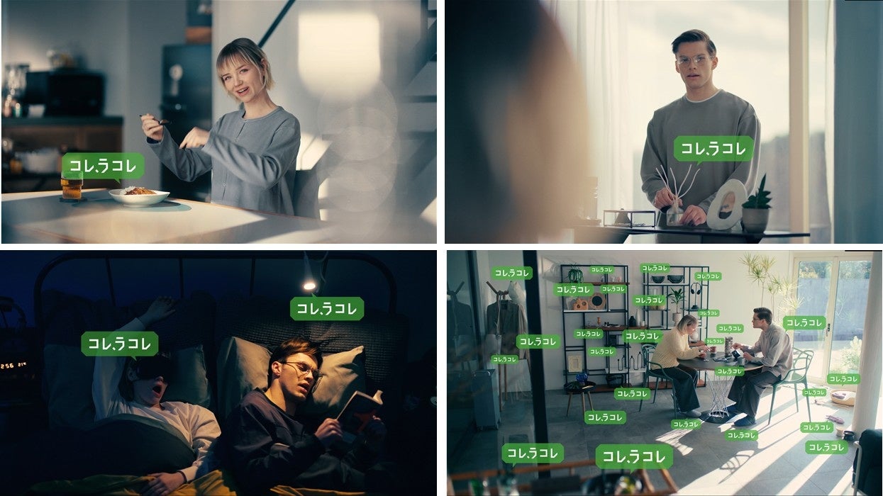 正反対な二人の日々の暮らしのストーリー。スマートな夫は、当たり前の毎日を豊かにするためのアイテムを、妻と自分のために用意しています。そんなことも知らない妻はいつもスマートな夫を見て、これはどこの商品なのかを尋ねます。夫の答えはいつも決まって「コレ、ラコレ」。実は二人の自宅は、インテリアやゲーム、食品、二人が着ている洋服まで、様々なものを「LAKOLE」で揃えているのです。