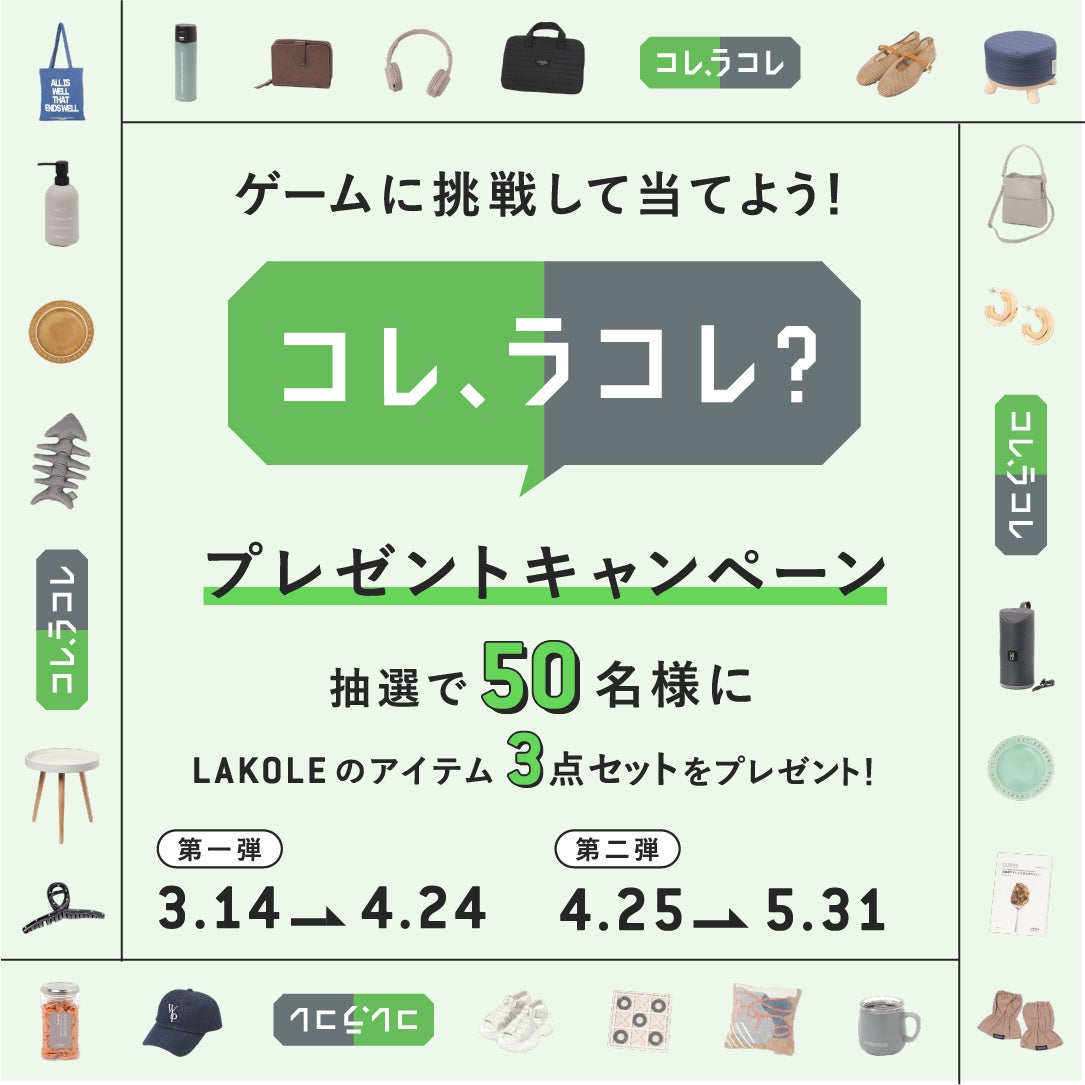 「Play fashion!」をミッションに掲げ、”グッドコミュニティ共創カンパニー” を目指す株式会社アダストリア(本部:東京都渋谷区渋谷2-21-1、代表取締役社長:木村 治)が展開するライフスタイルブランド「LAKOLE(ラコレ)」は、ラコレに来れば、アレもコレもぜんぶ揃うし、使うだけであたりまえの日常が素敵になるというメッセージを伝える “コレ、ラコレ” キャンペーンを2025年3月14日(金)よりスタートします。TVCMの放映や、特設WEBページでゲームに挑戦して「LAKOLE」の商品3点セットが抽選で当たるプレゼントキャンペーンも開催いたします。
