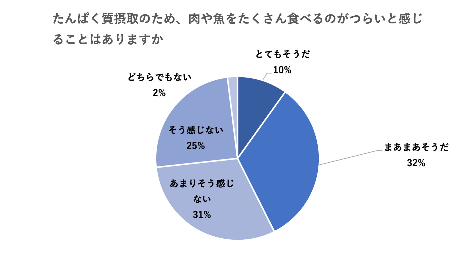 年齢を重ねると胃もたれなどの理由から、肉や魚などの動物性たんぱく質を避ける人が多いと想定していたものの、実際は約半数以上の人が「(たくさん食べることをつらいと)感じない」と回答。