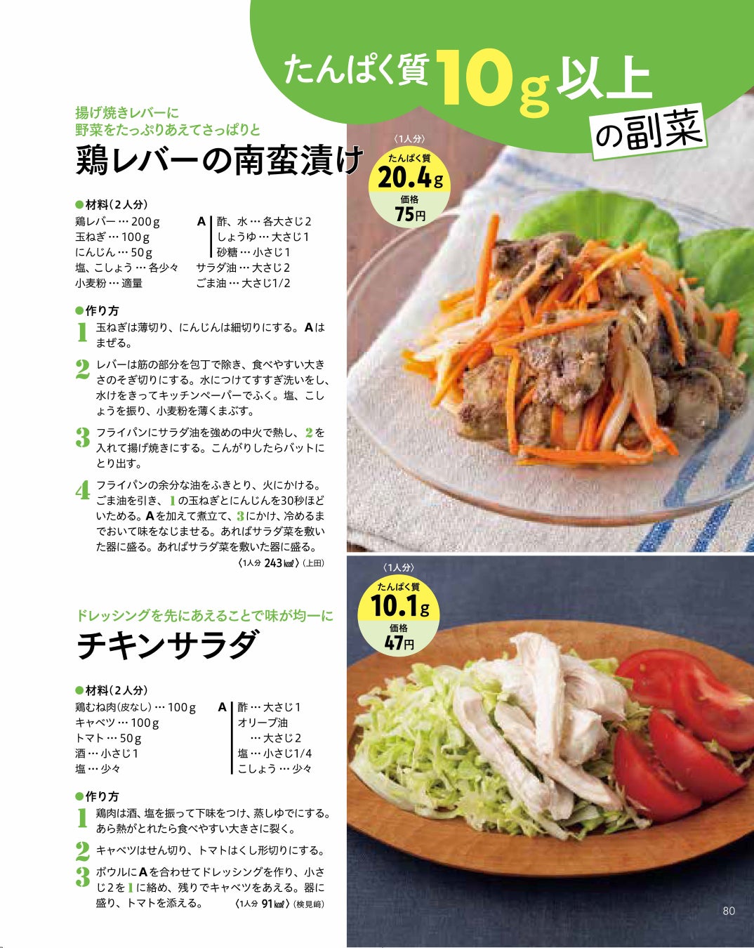 冷蔵庫にあるものや、スーパーの特売の肉で作ったり、冒頭にある「たんぱく質一覧表」を参照しながら、「より高たんぱくな食材」を選んでレシピを決めるのもおすすめ。