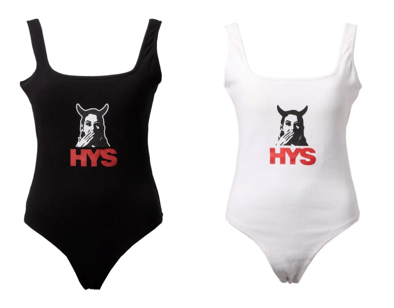 「TW」の定番ボディースーツに「HYS」モチーフをプリント。サイズ展開もS、M、Lまで広げ、より自分にあったスタイリングが可能に。