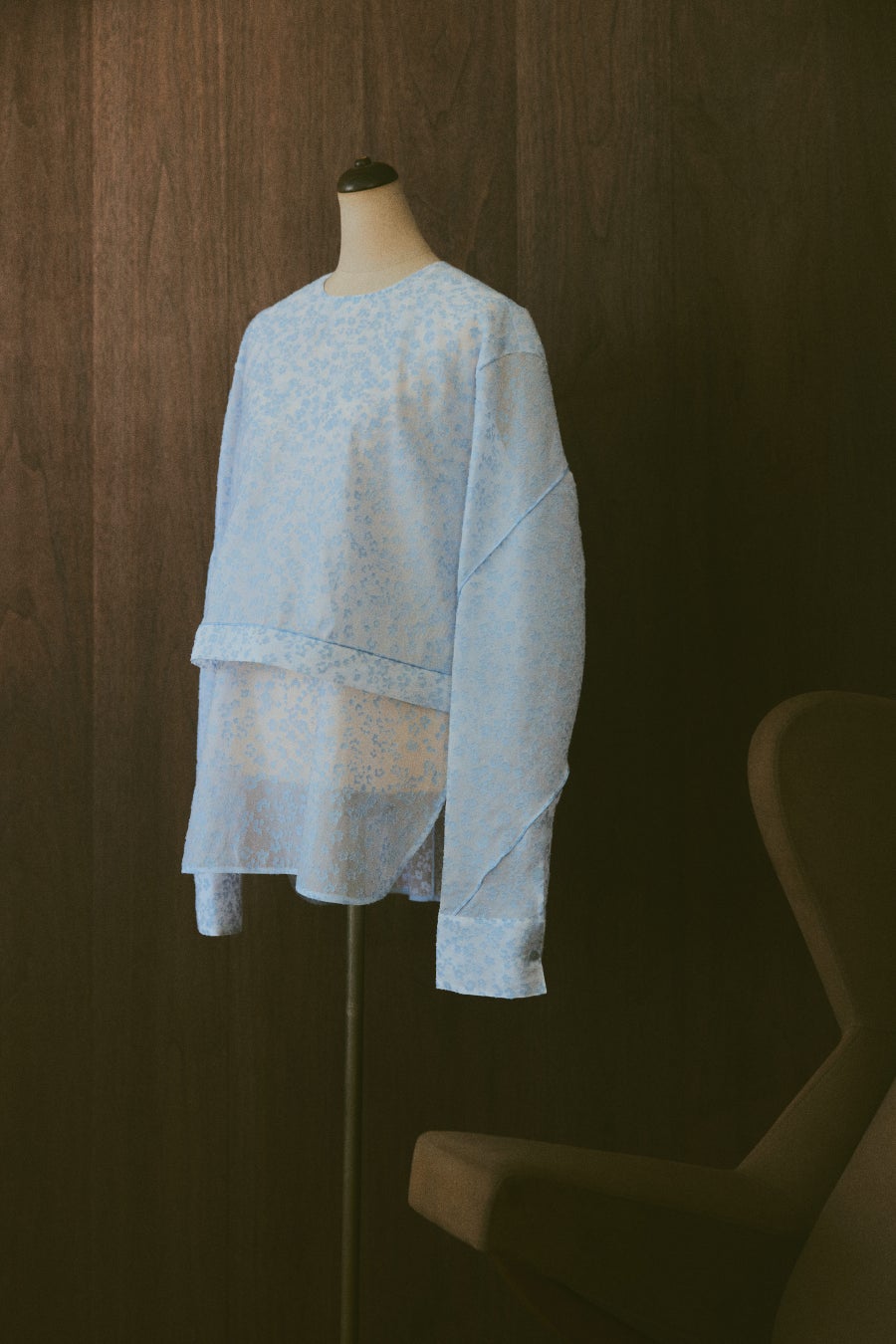 過去のアーカイブから好評をいただいたフラワープリントのブラウスを、今回特別に阪急うめだ本店限定カラーのブルーで復刻しました。