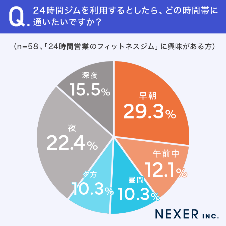 さらに、24時間ジムに興味があると回答した方に、利用したい時間帯を聞いてみました。