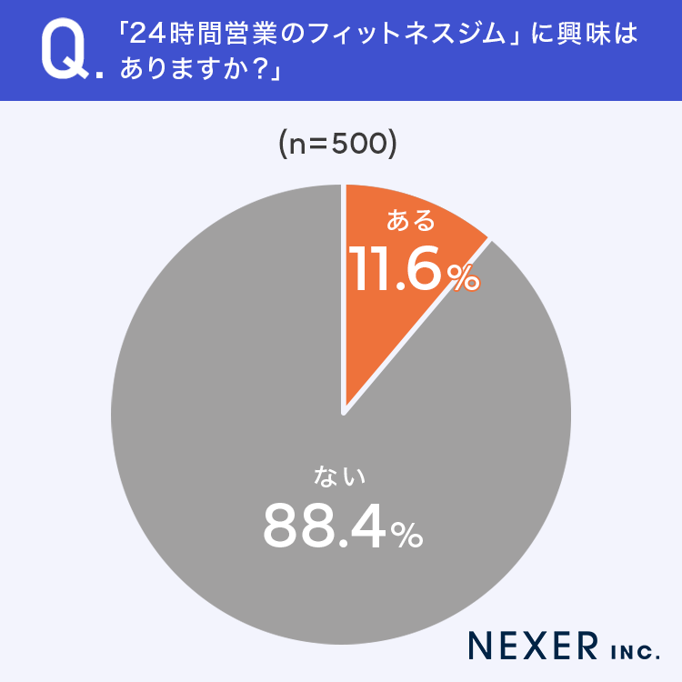 続いて、24時間営業のフィットネスジムに興味があるかどうかを聞いてみました。