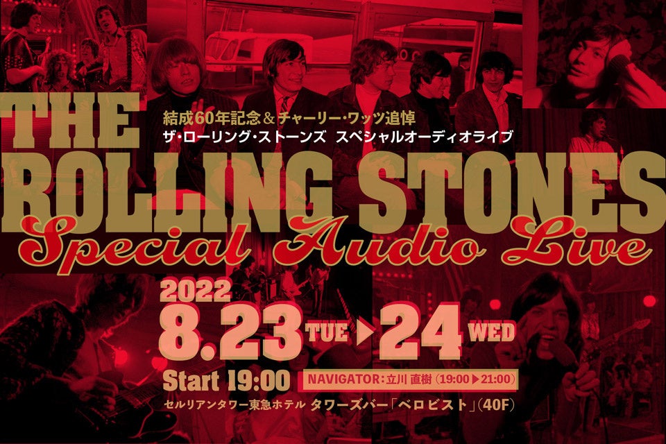 世界で最も重要なロック・グループのひとつである「ザ・ローリング・ストーンズ」。2022年の結成60年を祝福すると同時に、2021年8月24日に80歳で亡くなった不動のドラマー、チャーリー・ワッツを追悼し、ストーンズの名曲の数々をテクニクス社提供のハイグレードなオーディオでダイナミックに再生いたします。地上40階から広がる美しい夜景と美味しいお酒とともに、数々の音楽評論でも知られるプロデューサー立川直樹氏のナビゲートでお楽しみください。