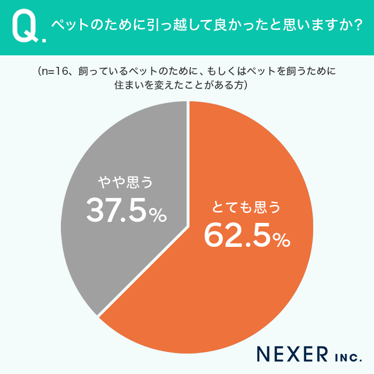 続いて、ペットのために住まいを変えたことがある方に、ペットのために引っ越して良かったと思うかを聞いてみました。