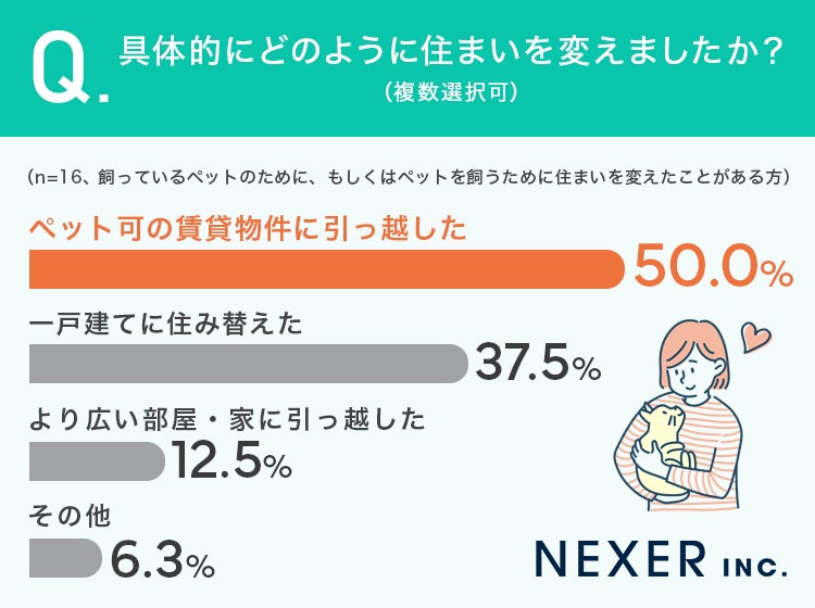 続いて、ペットのために住まいを変えたことがある方に、具体的にどのように住まいを変えたかを聞いてみました。