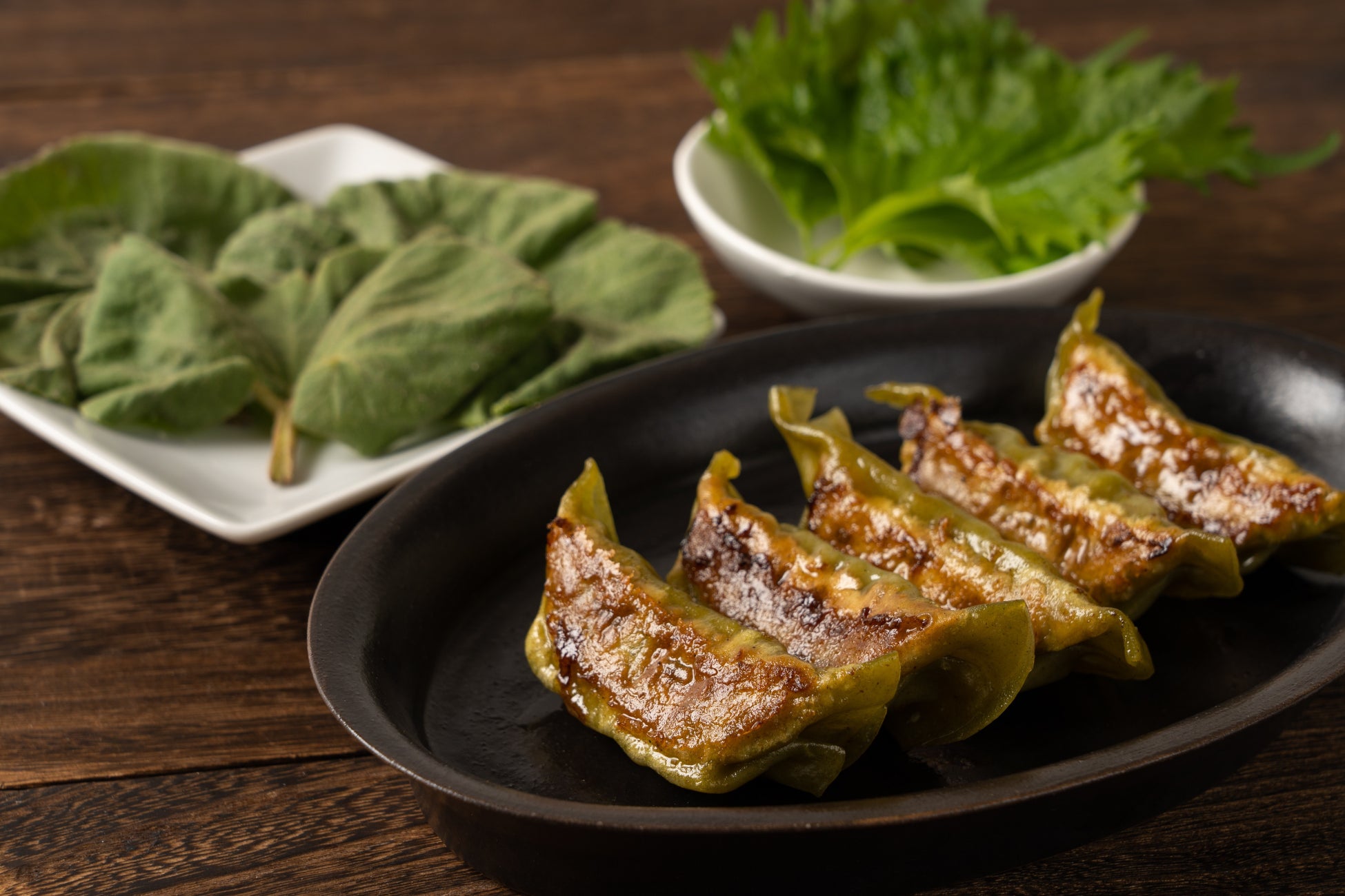 伊勢丹新宿店の常連ブランド<餃子の餃天>。お店を構える秋田県の地元産食材を中心に、産地や食材にこだわった味わいが魅力です。お店のラインナップで高い人気を誇るふき餃子は、なんと餃子の皮に郷土野菜「秋田ふき」を練り込み、青じそたっぷりの餡を包んで焼いた、夏にぴったりの一品。隠し味の秋田県産味噌が、同じく秋田県産のフレッシュな豚肉にコクを加え、奥行きと深みを引き出しています。ニンニクを使っておらず、ふきの独特な風味と青じその豊かな香りがなんとも爽やかな和風テイストです。