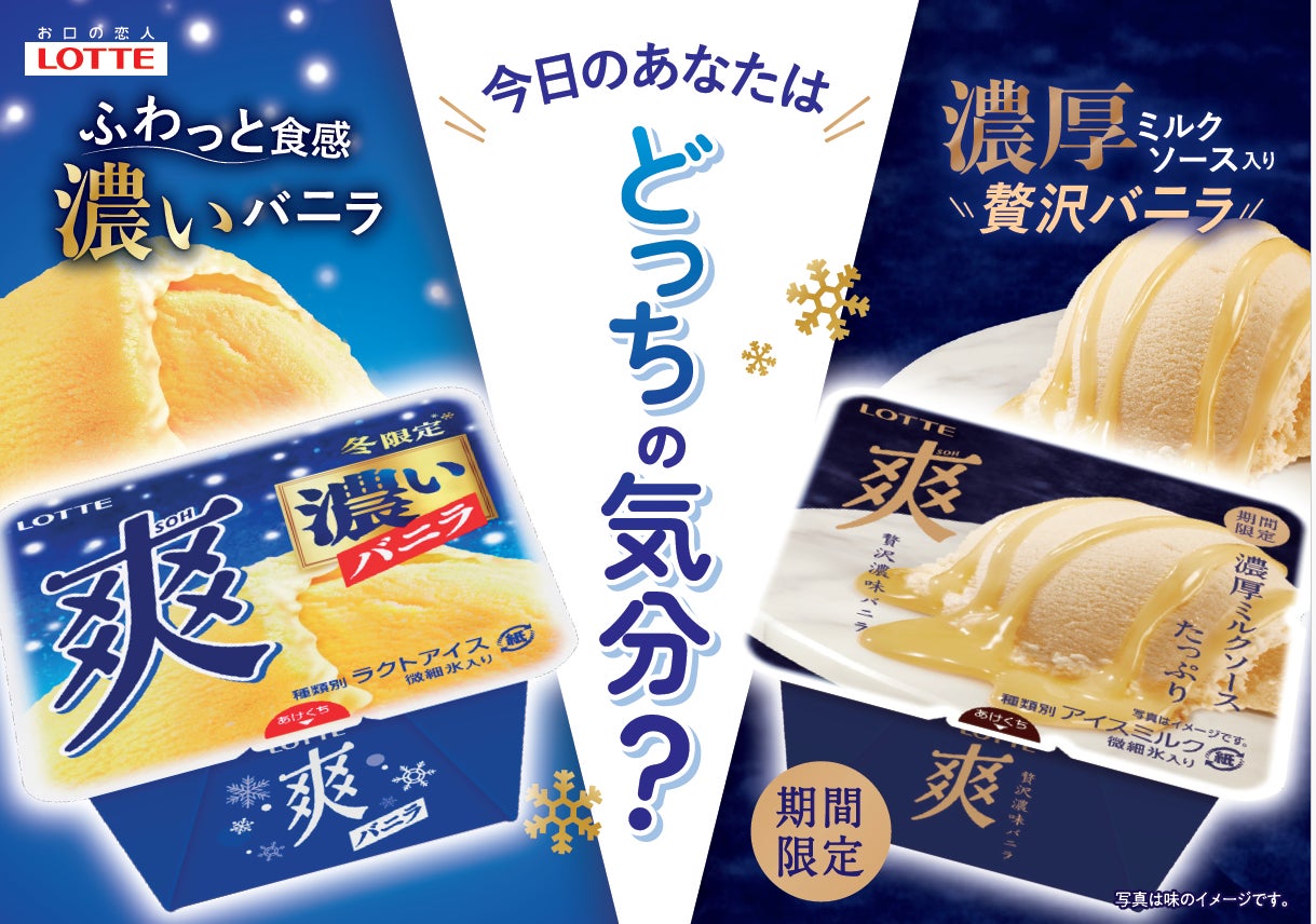 株式会社ロッテ(東京都新宿区、代表取締役社長執行役員:中島英樹)は11月17日(月)に、微細氷入りでくちどけの良い食感とさっぱりとした後味が楽しめる 「爽」ブランドから、『爽 贅沢濃味バニラ』を発売いたします。昨年コンビニエンスストア先行で発売し、「濃厚なのに後味が良い」と爽ブランド最大の特徴を多くのお客様から評価していただきました。より多くの皆さまにお楽しみいただけるよう、販売チャネルを拡大して発売します。