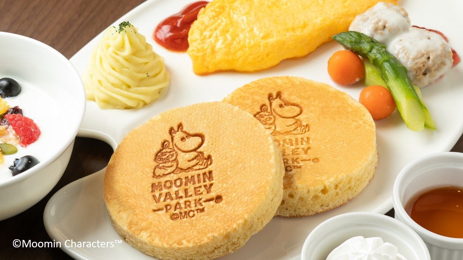 10月12日からご用意するスペシャルルームでは、「ムーミン谷の11月」がコンセプトの壁紙に模様替えし、現在販売中のブルーを基調とした賑やかな雰囲気とは異なる、シックな空間に生まれ変わります。また、ご出発前の朝食はブッフェ形式のほか、6月より新メニューとしてバレーパークのロゴが刻印されたオリジナルパンケーキ朝食もスタートしご好評いただいております。