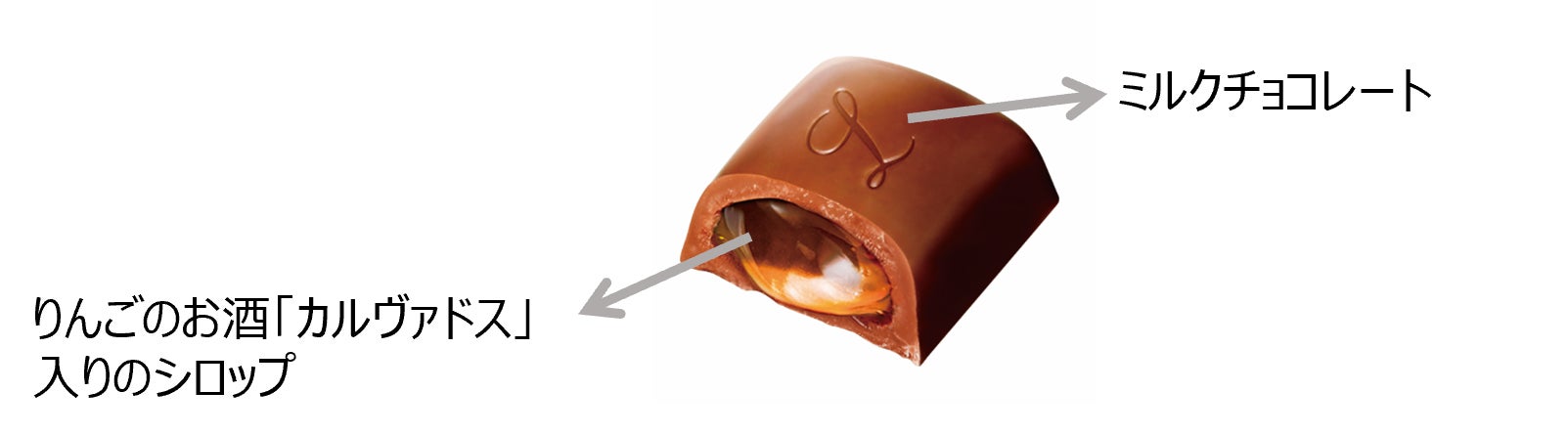 フルーティーなりんごのお酒「カルヴァドス」を使用したシロップをたっぷりミルクチョコレートにとじ込めました。