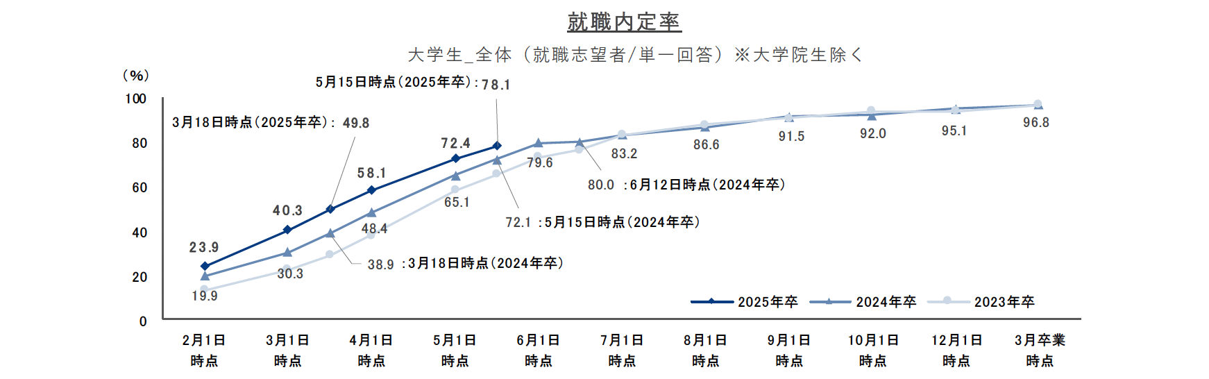 就職プロセス調査(2025年卒)「2024年5月15日時点 内定状況」