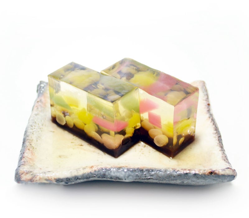 天の川をイメージした黒羊羹と錦玉の半棹羊羹。