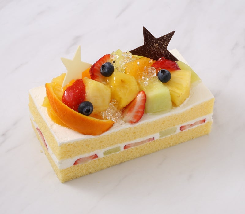 きらきらと輝く星と5種のフルーツを飾った七夕限定のショートケーキです。