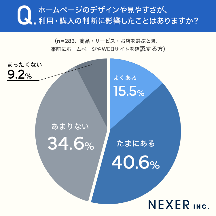 ■56.1%が「ホームページのデザインや見やすさが利用・購入の判断に影響したことがある」と回答