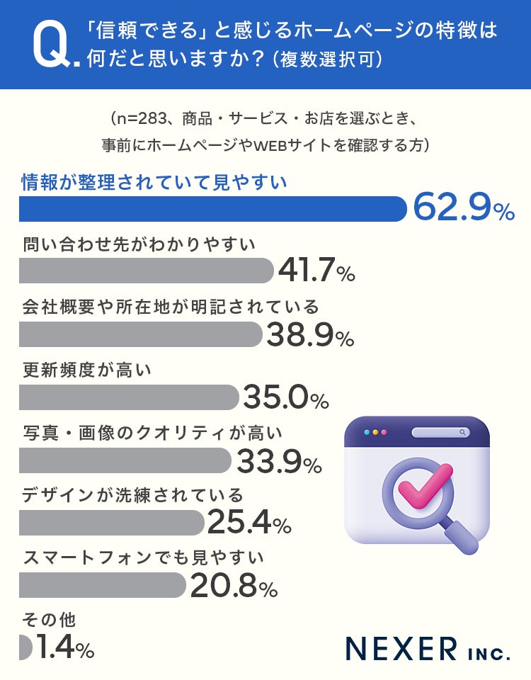 ■「信頼できる」と感じるホームページの特徴、1位は「情報が整理されていて見やすい」